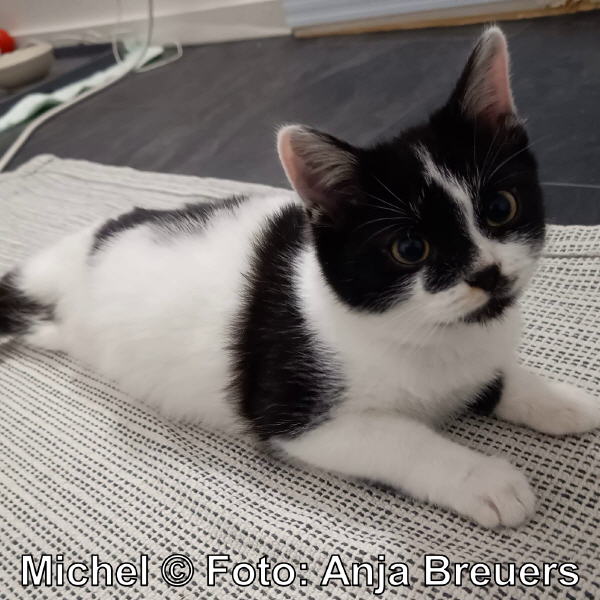 Kater Michel, geboren ca. August 2025, wurde ganz allein mitten im Winter von einem aufmerksamen Tierfreund gefunden und zu uns gebracht. Leider kann er nicht erzählen, warum er ohne Mutter und Geschwister durch die Kälte herumirrte.