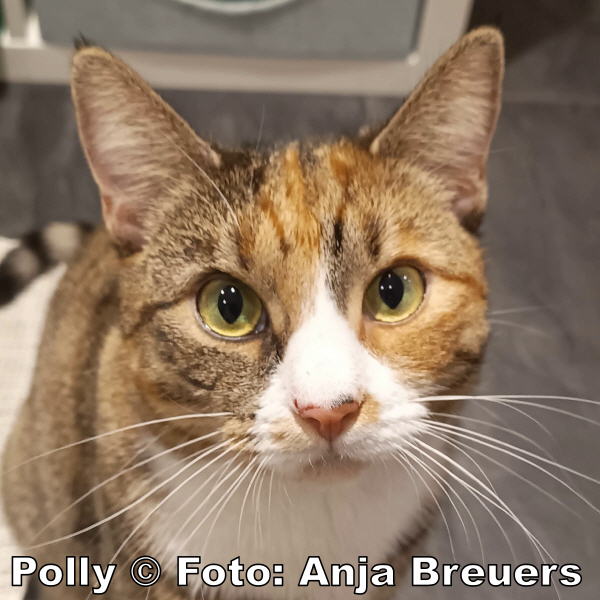 Polly (ca. 2,5 Jahre) wurde von tierlieben Menschen in ihrem Garten gefunden, als sie um Futter gebettelt hat. Da sie dort nicht bleiben konnte, fand Polly auf einer unserer Pflegestellen ihr vorübergehendes zu Hause. Wir wissen nicht, was Polly erlebt hat. Ihre Angst und Vorsicht in den ersten Wochen in Sicherheit ließen uns darauf schließen, dass sie es nicht leicht hatte. Mit der Zeit gewöhnte sie sich langsam an den Menschen und ihre Umgebung. Sehr behutsam und mit Geduld fing sie an, Streicheleinheiten zu genießen und jeden Tag ein bisschen mehr von sich zu geben. Ihre Herzensmenschen sollten Erfahrung, Geduld und viel Liebe mitbringen und ihr die Zeit geben, die sie braucht. Wenn sie vertraut, sucht sie von sich aus die Nähe zum Menschen. Sie zeigt ganz genau, was sie möchte und wozu sie noch nicht bereit ist. Was sie möchte, ist nicht mehr ohne ihre kleine Freundin Lina zu sein. Die beiden haben sich auf der Pflegestelle kennengelernt. Mit Lina lernt Polly, unbeschwert und neugierig zu sein.