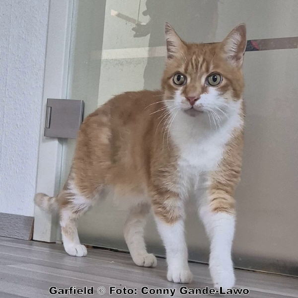 Garfield ist 13 Jahre jung, kastriert, entwurmt, geimpft, klettert gerne und viel auf seinen Kratzbaum, um auf höchster Position zu schlafen und sein Reich im Auge zu behalten. Garfield ist ein kleiner Prinz, der sein Reich weder mit anderen Katzen, noch mit Hunden, und auch nicht mit Kindern teilen möchte. Er möchte alle Streicheleinheiten und Aufmerksamkeit für sich ganz alleine haben.