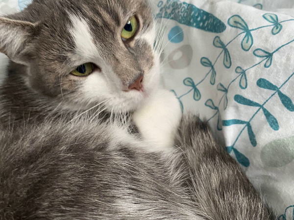 Ich heiße Nora, bin ca. 2 Jahre alt und wohne mit meiner Tochter Nelly, ca.12 Wochen jung in einem Pflegehotel. Wir hatten einmal ein zu Hause, aber unsere Menschen sind weggegangen und haben uns vergessen. Ich bin eine ruhige und liebevolle Mutter. Anfangs bin ich noch schüchtern zu Menschen und brauche ein bisschen Zeit in einer neuen Umgebung. Wenn ich aber Vertrauen schenke, lasse mich gern unterm Kinn kraulen oder auf den Arm nehmen und genieße Streicheleinheiten. Sehr gern sitze ich am Fenster und beobachte das Geschehen. Am liebsten spiele ich mit Nelly Verstecken. Und ich liebe Futter. Da bin ich auch nicht wählerisch.